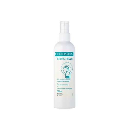 CHEMI-PHARM TROPIC FRESH 250ml pihustiga pudel LÕHNA EEMALDAVA TOIMEGA HÜGIEENILINE VÄRSKENDAJA 250ml
