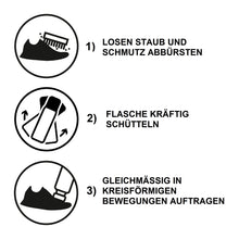 Puhastage oma jalanõud. Raputage pudelit põhjalikult. Suruge aplikaatori käsn tugevalt pinnale ja kandke ühtlaselt kerge survega. Laske täielikult kuivada. Korrake protseduuri eriti kahjustatud piirkondade jaoks ning poleerige nahk.