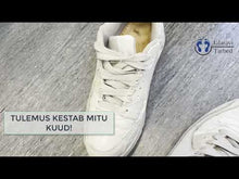 Valge osa läks ilusasti puhtaks. Ettevaatlik tuleb olla värvilise jalatsi pealispinnaga.